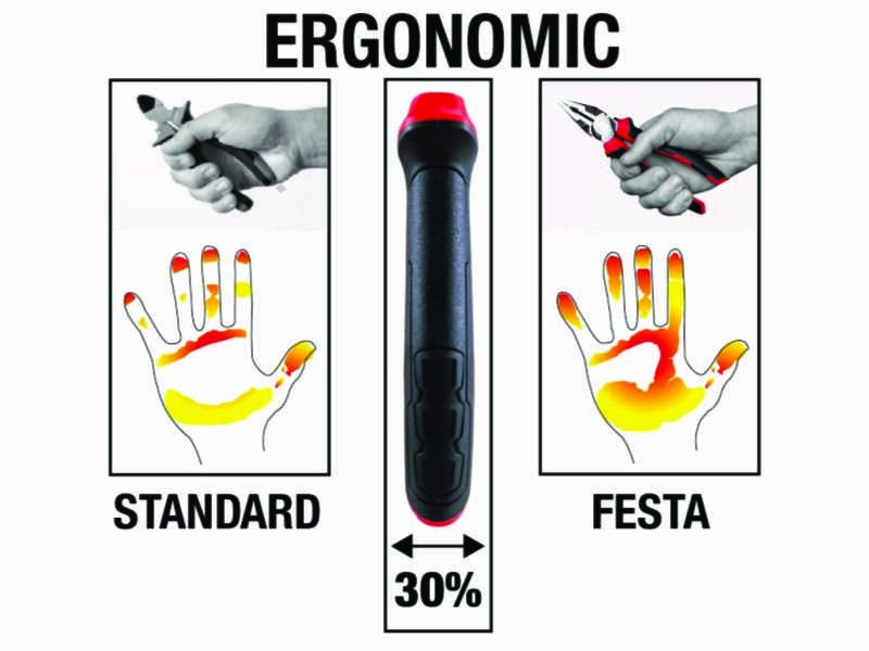 • o 30% více kontaktu s rukojetí, redukuje množství potřebné síly