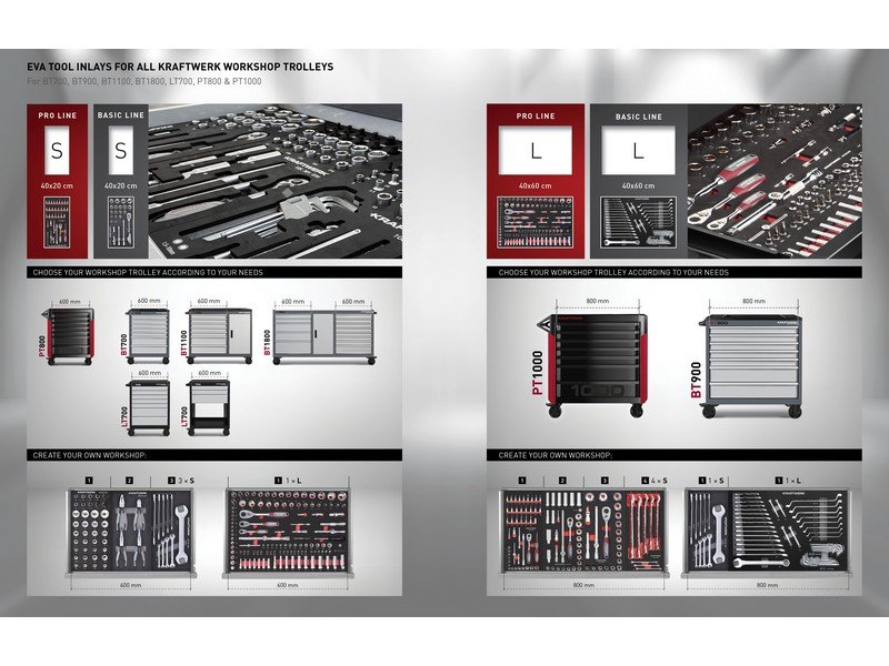 - 72 dílná sestava nářadí uložena v 5 zásuvkách - 4 modulů vybaveno izolovaným VDE nářadím - 1 modul s výstražnými značkami - uloženo v pěnových EVA vložkách - žlutý dílenský vozík BT700 7 zásuvek Basic Line Germany - robustní konstrukce s dvojitými stěnami - centrální zámek všech zásuvek, se zámkem z pohledové strany - nosnost na zásuvku: 45 kg - výsuvnost zásuvek: 100% - nosnost (bez pohybu): 450 kg - perforované