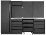 Dílenská stěna 2640x488x2000mm 9 zásuvek a vozík, deska NEREZ MOBILIO BLACK dílenský nábytek
